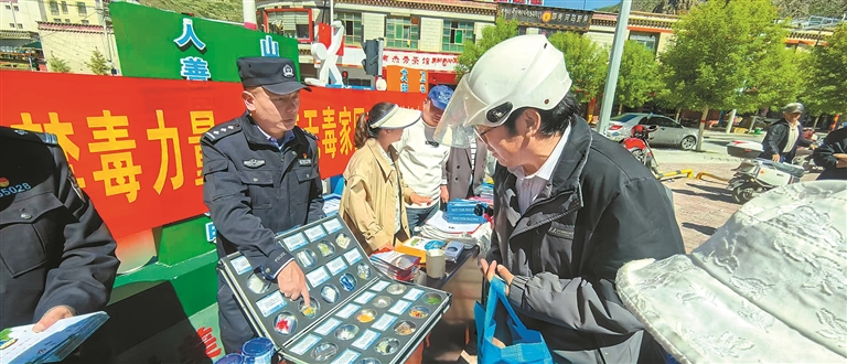 圖為比如縣公安局法制科民警在街頭開展禁毒宣傳。記者 彭琦 攝