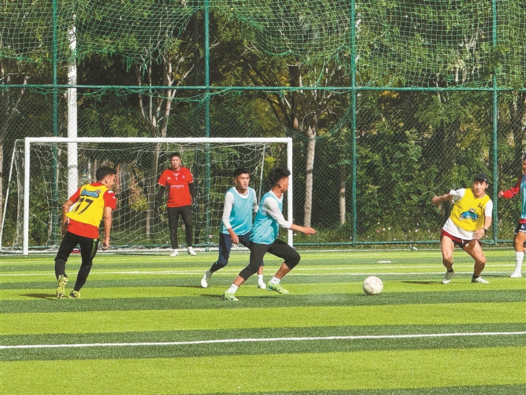 圖為拉薩濱河體育公園內(nèi),足球愛好者們正在比賽。記者 馮琳琳 曹琳 攝