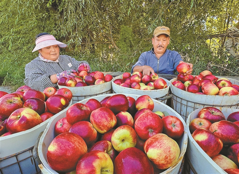 走進(jìn)位于林芝市巴宜區(qū)與米林市交界處的林芝農(nóng)墾嘎瑪農(nóng)業(yè)有限公司蘋果種植基地,連片的果樹枝繁葉茂,紅彤彤的蘋果綴滿枝頭。得益于高原充足的日照、較大的晝夜溫差,以及清冽的雪山融水灌溉,這里的蘋果色澤鮮艷,口感脆甜多汁,深受消費(fèi)者青睞。