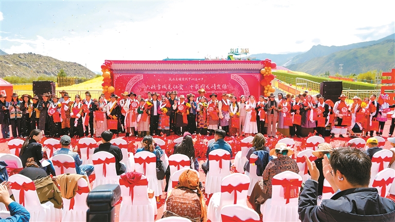 今年是西藏自治區(qū)成立60周年和堆龍德慶區(qū)撤縣設(shè)區(qū)10周年。近日,拉薩市堆龍德慶區(qū)舉辦“六秩雪域見證愛·十載堆龍情定緣”集體婚禮盛典活動(dòng)。60位新人在眾人的見證下完成了婚禮,共同開啟幸福生活篇章。