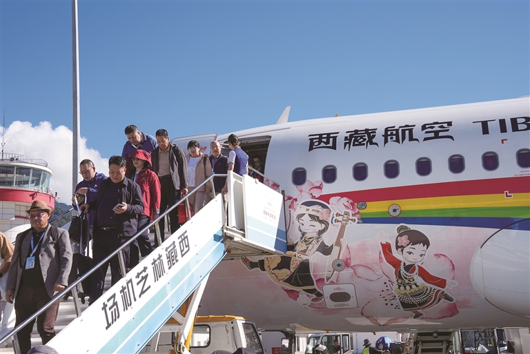 當(dāng)日上午8時(shí)40分,首航航班從成都啟程,搭載40余位來自共建“一帶一路”國家及西歐、東北亞、東南亞等地區(qū)的旅行商代表,以及來自祖國各地的旅客,飛向“西藏江南”林芝。冠名飛機(jī)化身為展示林芝風(fēng)采的流動(dòng)舞臺(tái),在萬米高空開啟了一場(chǎng)沉浸式體驗(yàn)。
