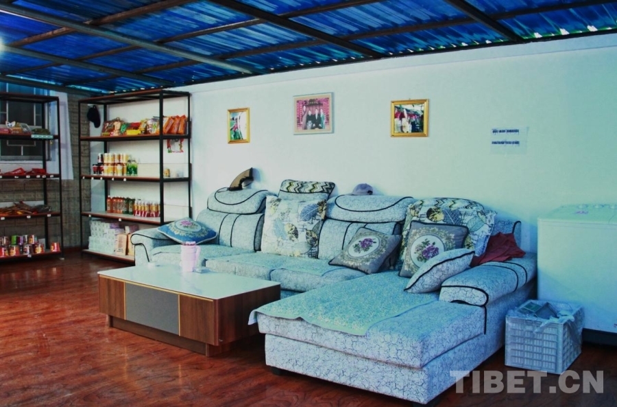 尼吉拉姆家在陜西援建邊境小康示范新居的一排排樓房中靠路邊一戶。走進戶門,院子搭著棚頂,形成了一個大的會客室,墻邊一溜柜子,上邊擺滿飲料、生活用品等,就是一個小小的便民商店了。這只是尼吉拉姆“產(chǎn)業(yè)”中的一項,她和丈夫羅啟明還經(jīng)營一家養(yǎng)雞場、兩人都擔任護邊員等,加上國家邊境補貼、草場補貼等,一年下來能有幾十萬元收入?!?/p>