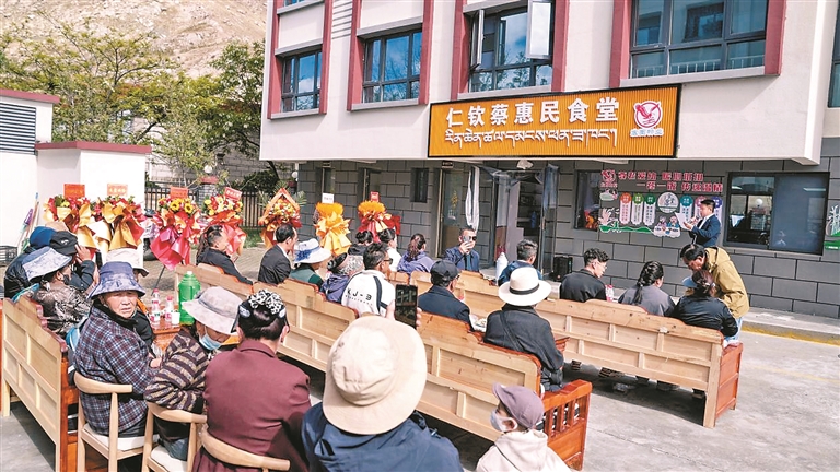 圖為娘熱街道仁欽蔡惠民食堂舉辦開(kāi)業(yè)儀式。記者 盧文靜 通訊員 張銀鵬 攝