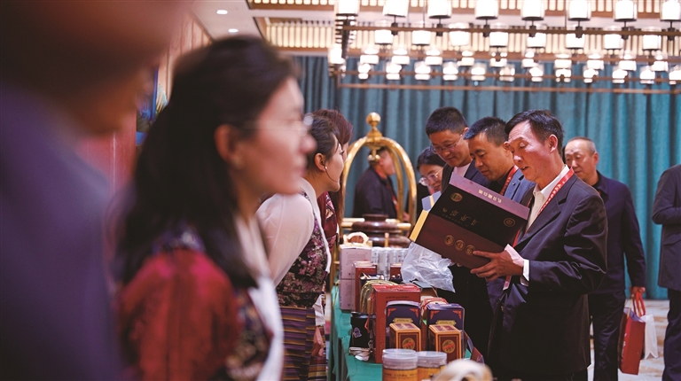 正在推介會上了解特色產品的嘉賓。記者 旦增玉珍 攝