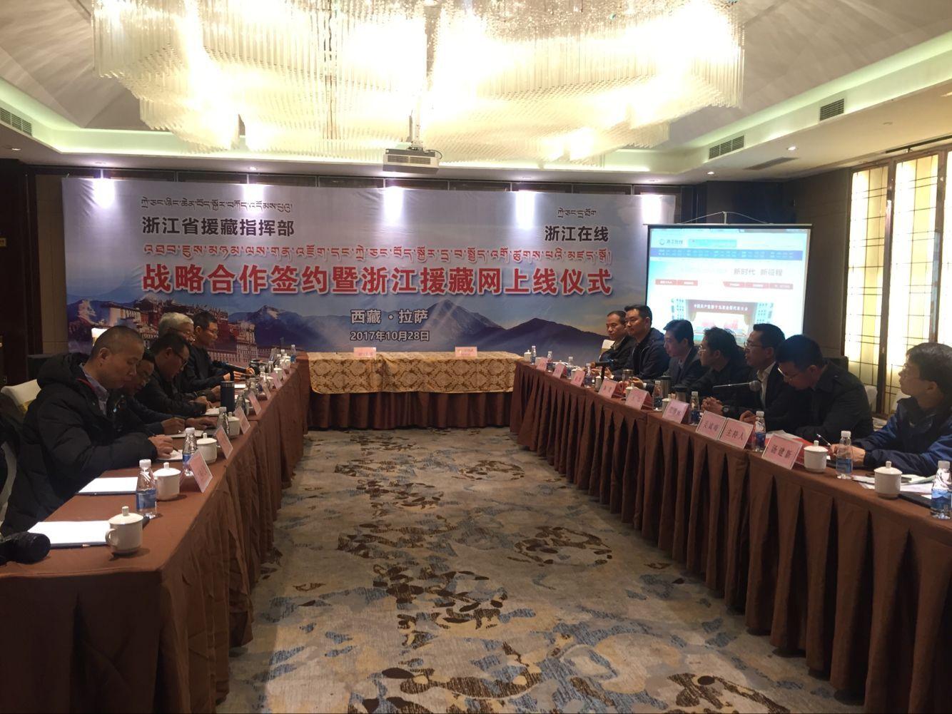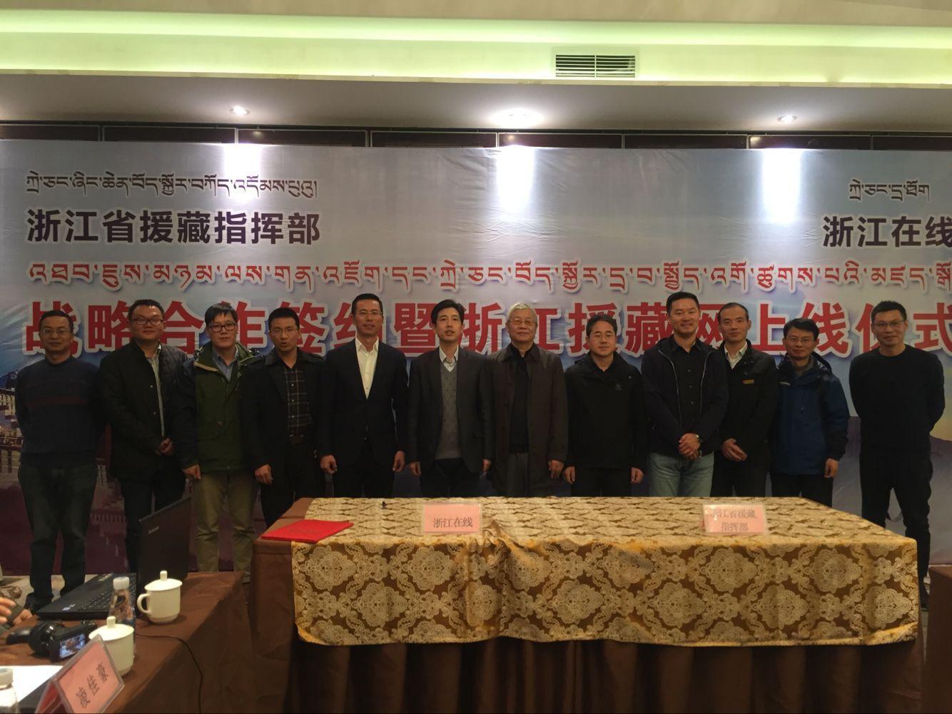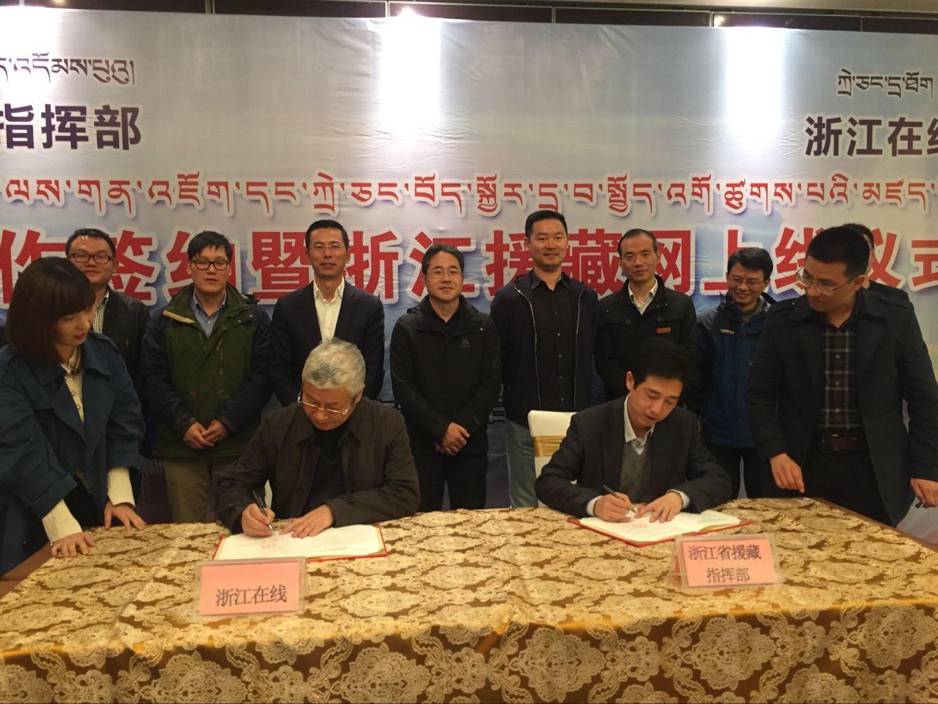 浙江省援藏指揮部黨委書記、指揮長、那曲地委副書記陳澄和浙江在線副總編輯丁榮毅,共同簽訂“浙江援藏網(wǎng)”戰(zhàn)略合作協(xié)議