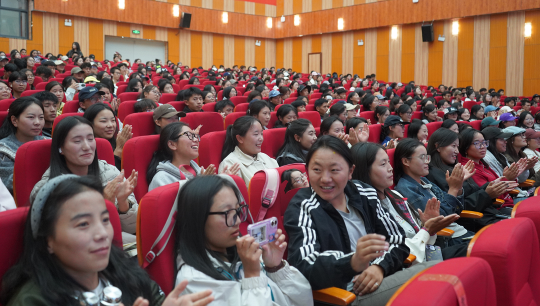 在西藏大學(xué)藝術(shù)學(xué)院益西曲珍同學(xué)深情演唱歌曲《天路》后,舞劇電影《天路》主演拉巴扎西為現(xiàn)場師生帶來精彩的映前導(dǎo)賞,解讀作品的創(chuàng)作背景、藝術(shù)風(fēng)格及其思想內(nèi)涵。隨后,全校2000多名師生共同觀看了舞劇電影《天路》。