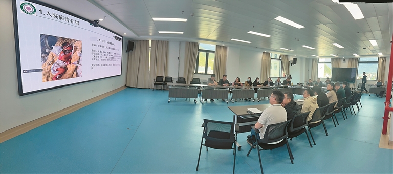 為制定精準(zhǔn)手術(shù)方案,林芝市人民醫(yī)院組織全院醫(yī)護(hù)人員大會(huì)診。記者 謝筱純 王珊 通訊員 李楊 攝